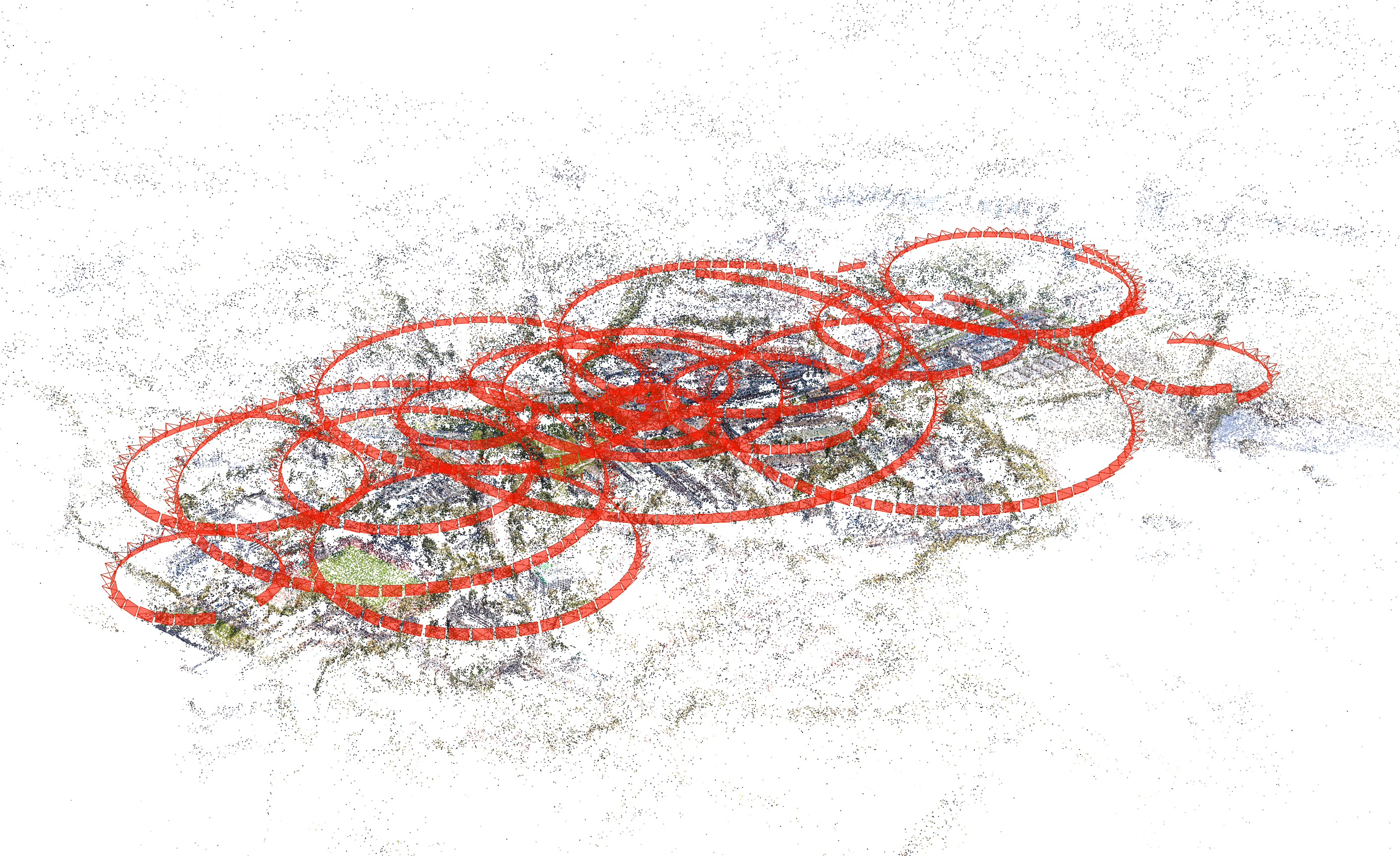 For this project, I captured the data with a DJI Mini 5 ProI literally bought my first drone for this project after playing around with my friend’s drone. DJI Mini 5 Pro is a good starter drone for this kind of project, especially with Circle QuickShot mode enabled., filtered out duplicated shots, merged the selected clips with ffmpeg, and then extracted PNG frames by sampling one frame every 300 frames. I then ran COLMAP on those images and obtained the reconstruction below.