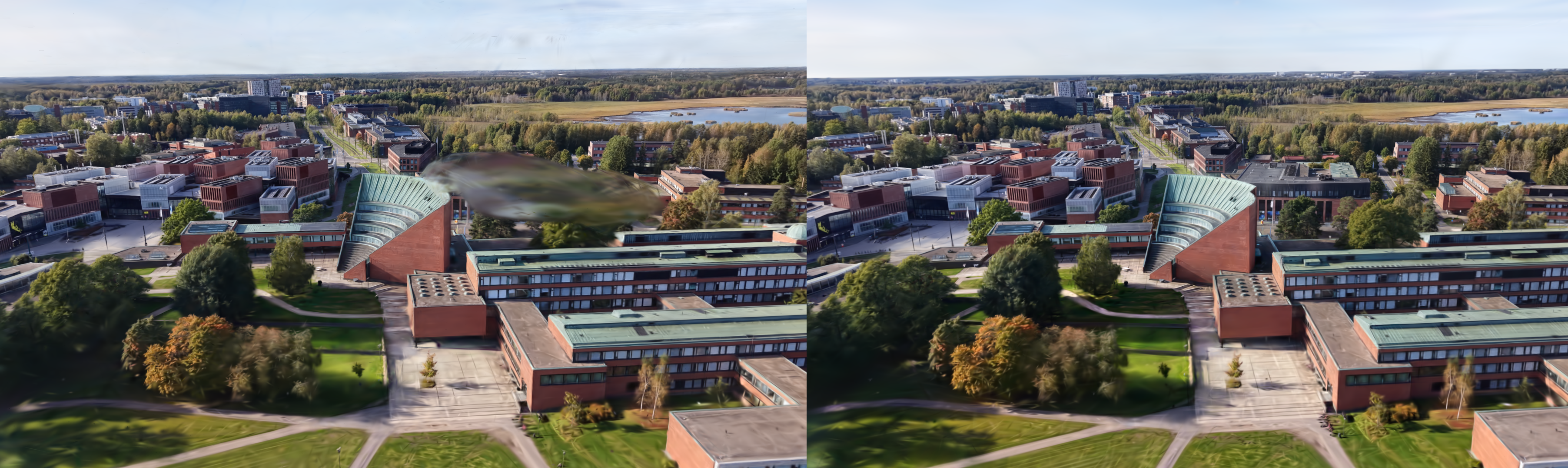 And the rest of the floaters can be removed with manual post-processing, in e.g superspt.at.