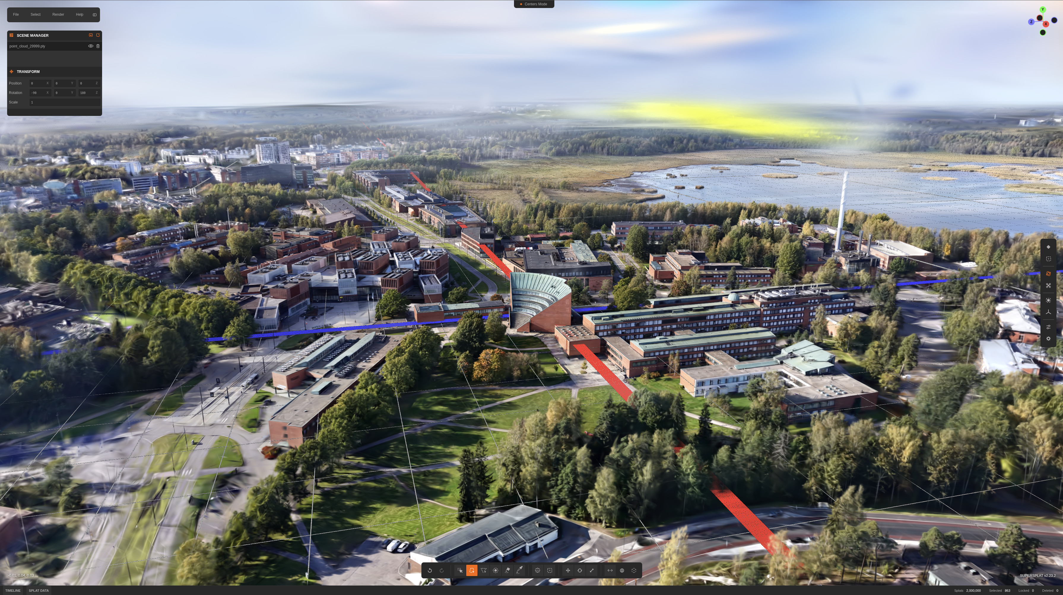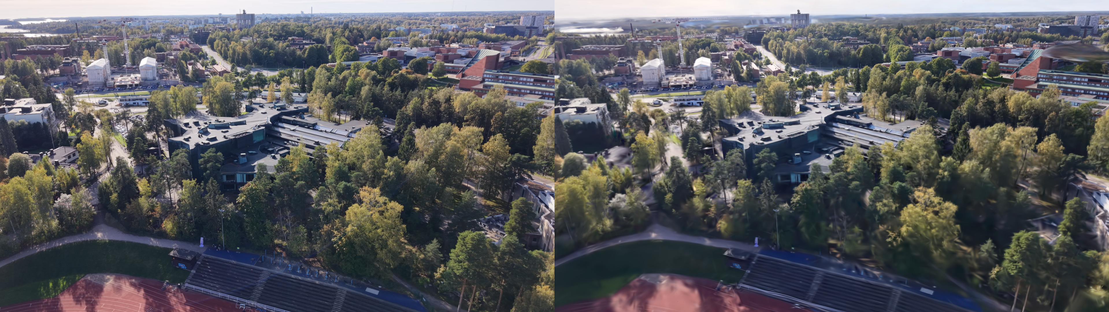 This project is made possible by recent advances in Gaussian Splatting. The scene was captured with DJI Mini 5 Pro, aligned in COLMAP, trained in gsplat with MCMC, compressed by SOGS, and rendered in PlayCanvas.